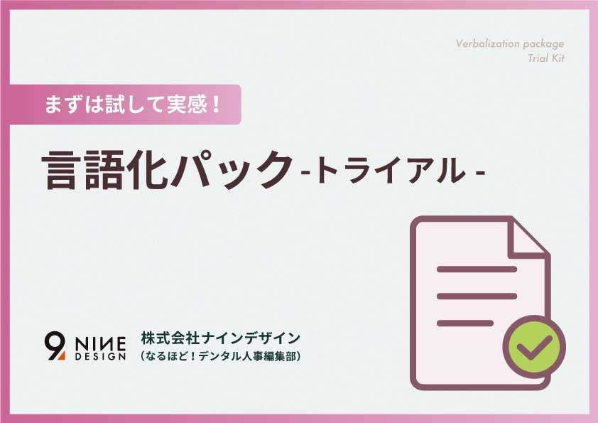 この「言語化パック-トライアル-」は、先生ご自身が自院の隠れた魅力を掘り起こし、応募が集まる求人票の「土台」を作る「言語化パッケージ(税込385,000円)」をお試しできるパッケージです。